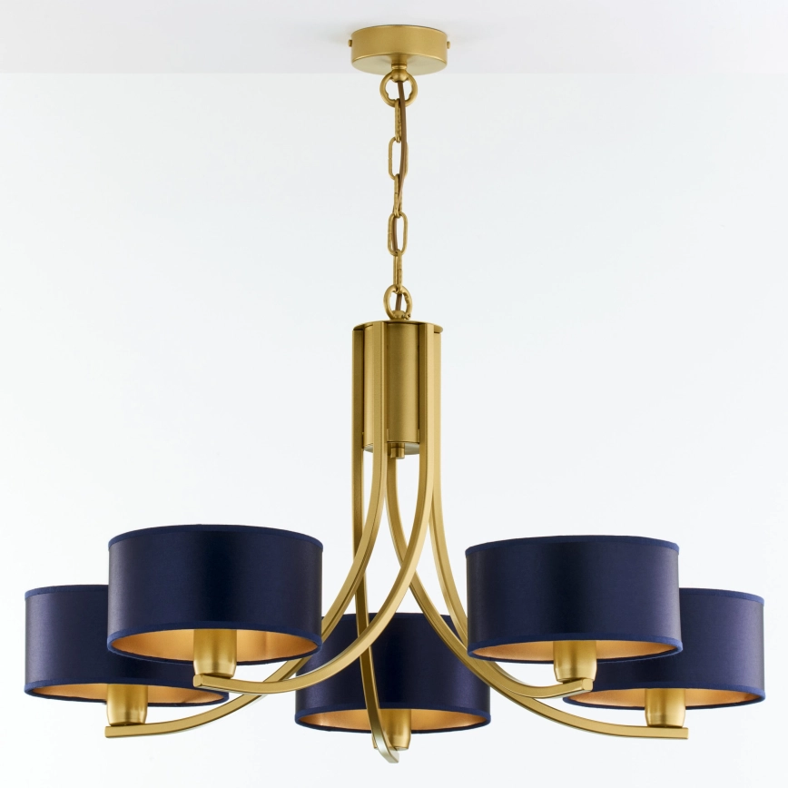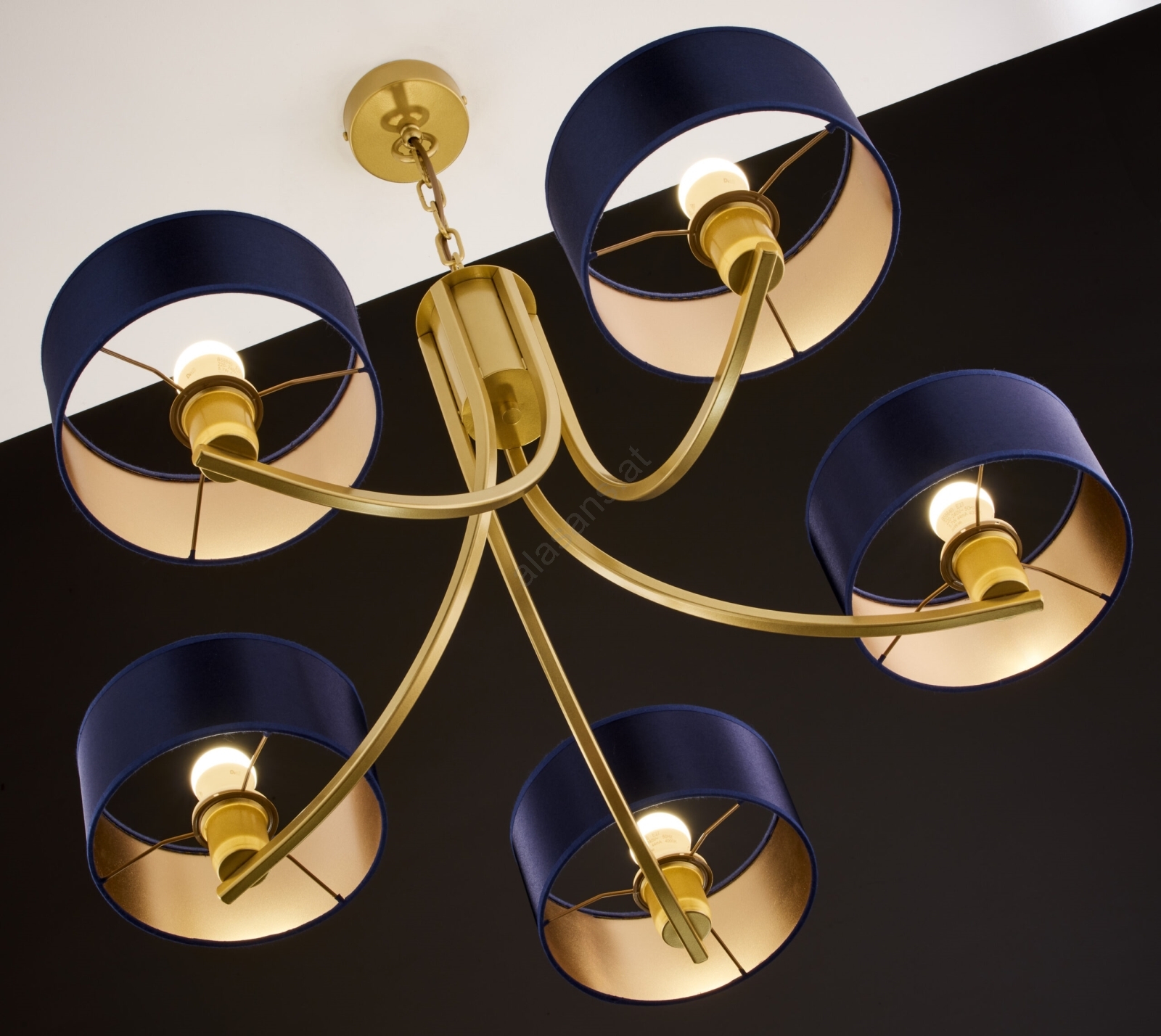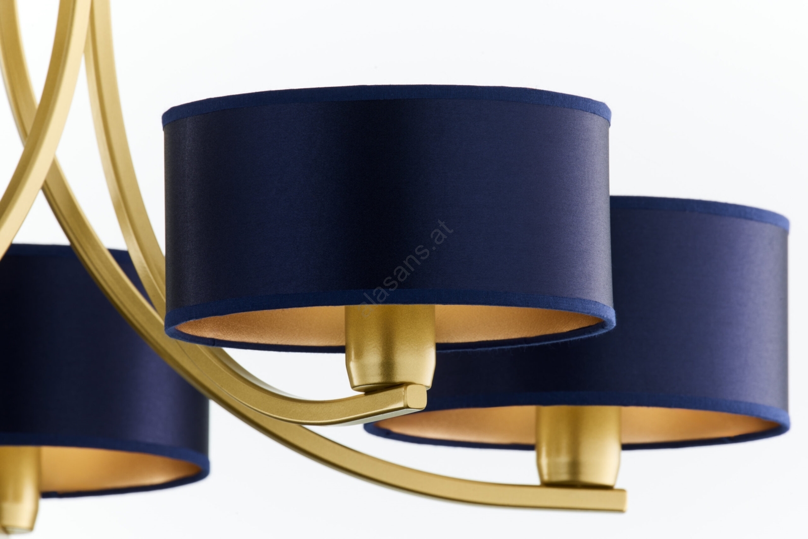 Jupiter 2094 - Kronleuchter an Kette ARTHUR 5xE27/15W/230V blau/gold zeichnet sich durch schönes und funktionales Design aus. Eine Glühbirne mit E27 Sockel ist für die Leuchte geeignet. Hier, können Sie andere Glühlampen zu vorteilhaften Preisen kaufen. Sie erhalten eine attraktive Ergänzung für Ihr Zuhause.