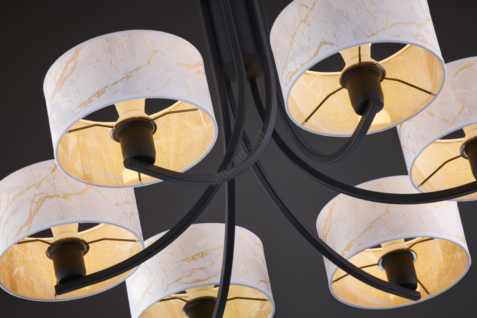 Jupiter 2105 - Kronleuchter an Kette ARTHUR 6xE27/15W/230V weiß/schwarz/Marmor-Dekor zeichnet sich durch schönes und funktionales Design aus. Eine Glühbirne mit E27 Sockel ist für die Leuchte geeignet. Hier, können Sie andere Glühlampen zu vorteilhaften Preisen kaufen. Sie erhalten eine attraktive Ergänzung für Ihr Zuhause.