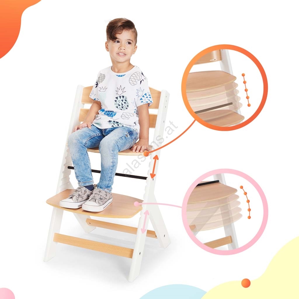 • Die Höhe des Sitzes und der Fußstütze ist verstellbar, so dass der Stuhl leicht an das Alter des Kindes angepasst werden kann.
