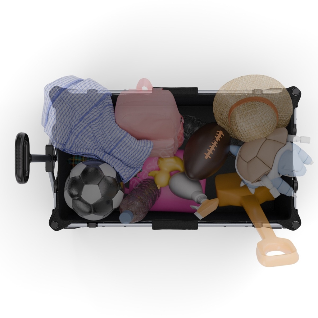 • Der teleskopische Griff mit verstellbarer Höhe ermöglicht ein komfortables Ziehen des Wagens für Personen unterschiedlicher Körpergröße.
