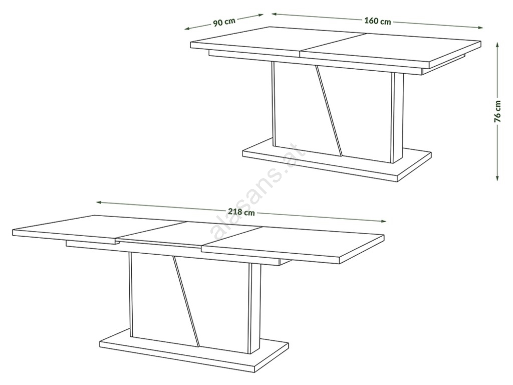 • Dank einer 58 cm Einlegeplatte lässt sich die Tischplatte auf bis zu 218 cm erweitern (unterstützt durch hochwertige Synchronführungen).