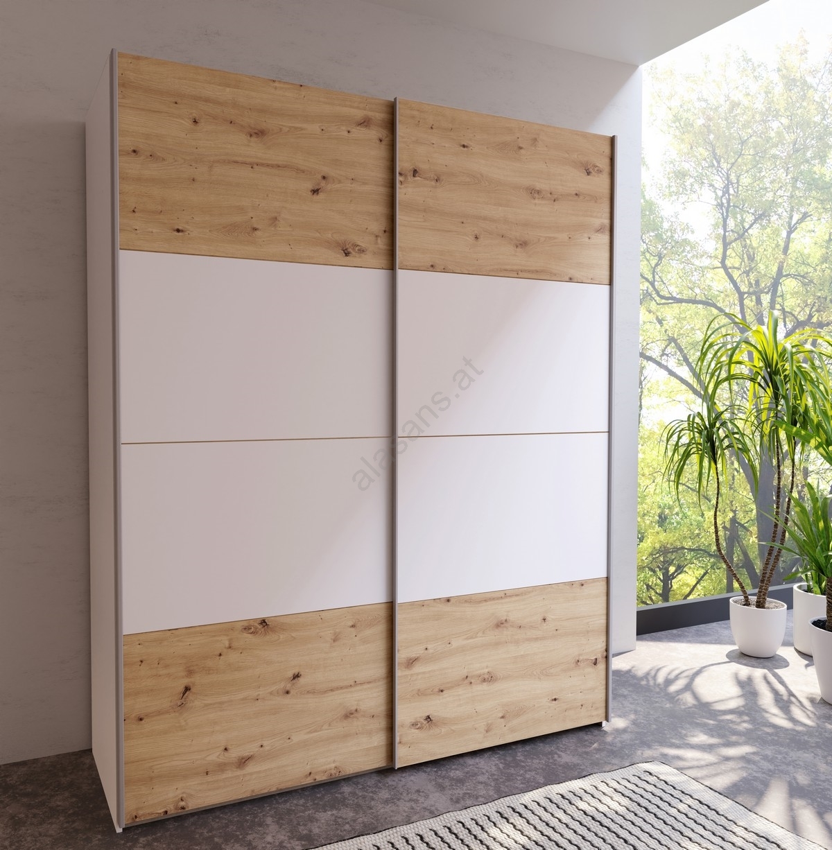 Kleiderschrank KARO 170x210 cm weiß/Artisan-Eiche