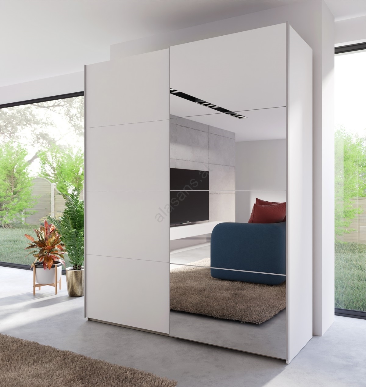 • Die Spiegelfläche des Kleiderschranks vereint Funktionalität und Ästhetik und lässt Sie sich von Ihrer besten Seite betrachten.