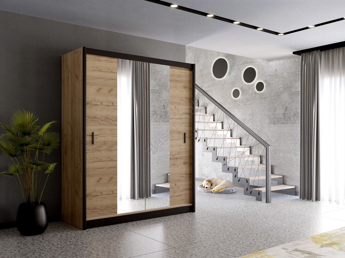 Kleiderschrank mit Spiegel MIRO 203x215 cm Eiche Craft/Schwarz