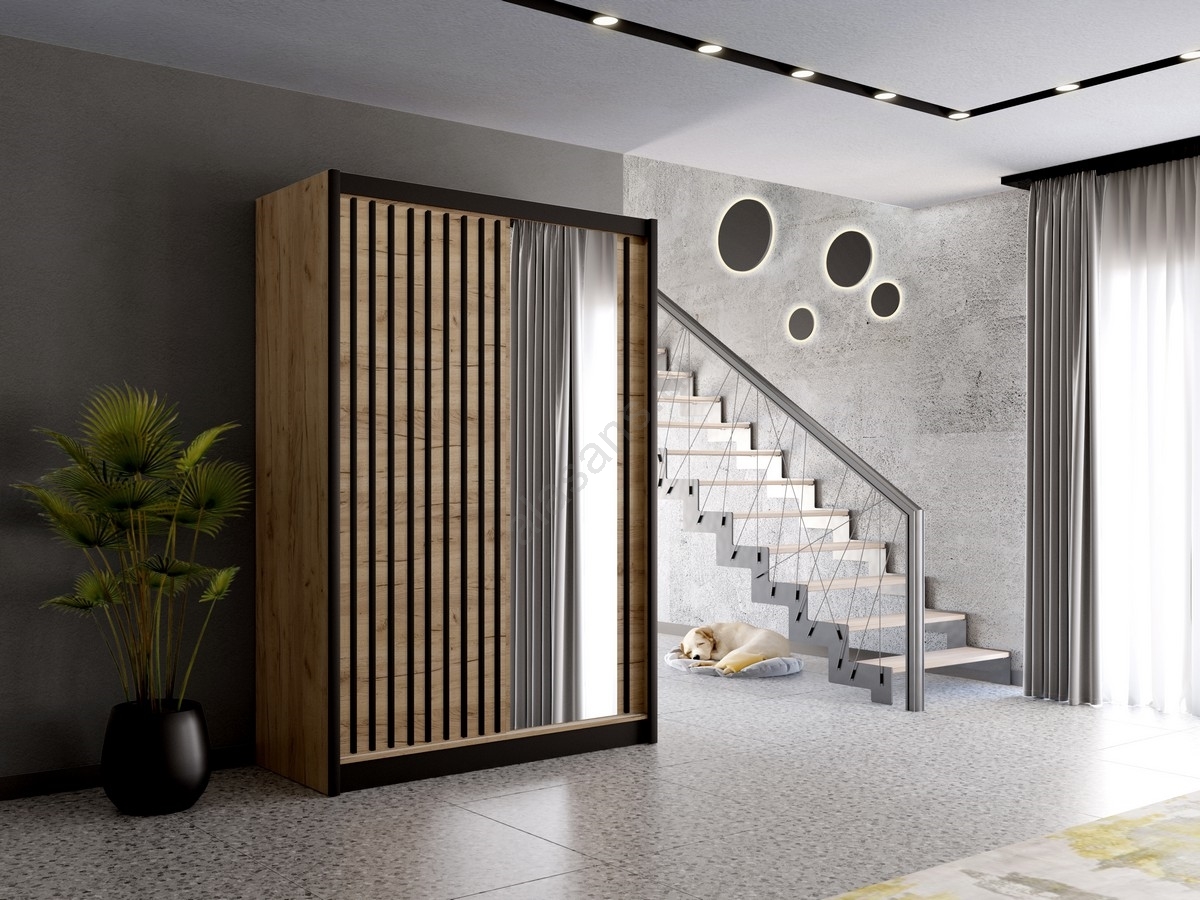 • Kleiderschrank mit Spiegel SABRINA 150x215 cm Wotan-Eiche