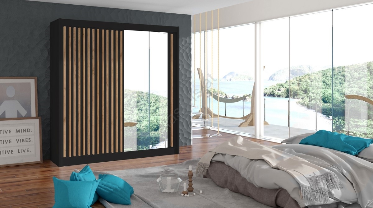 • Kleiderschrank mit Spiegel MIRO 203x215 cm Eiche Craft/Schwarz
