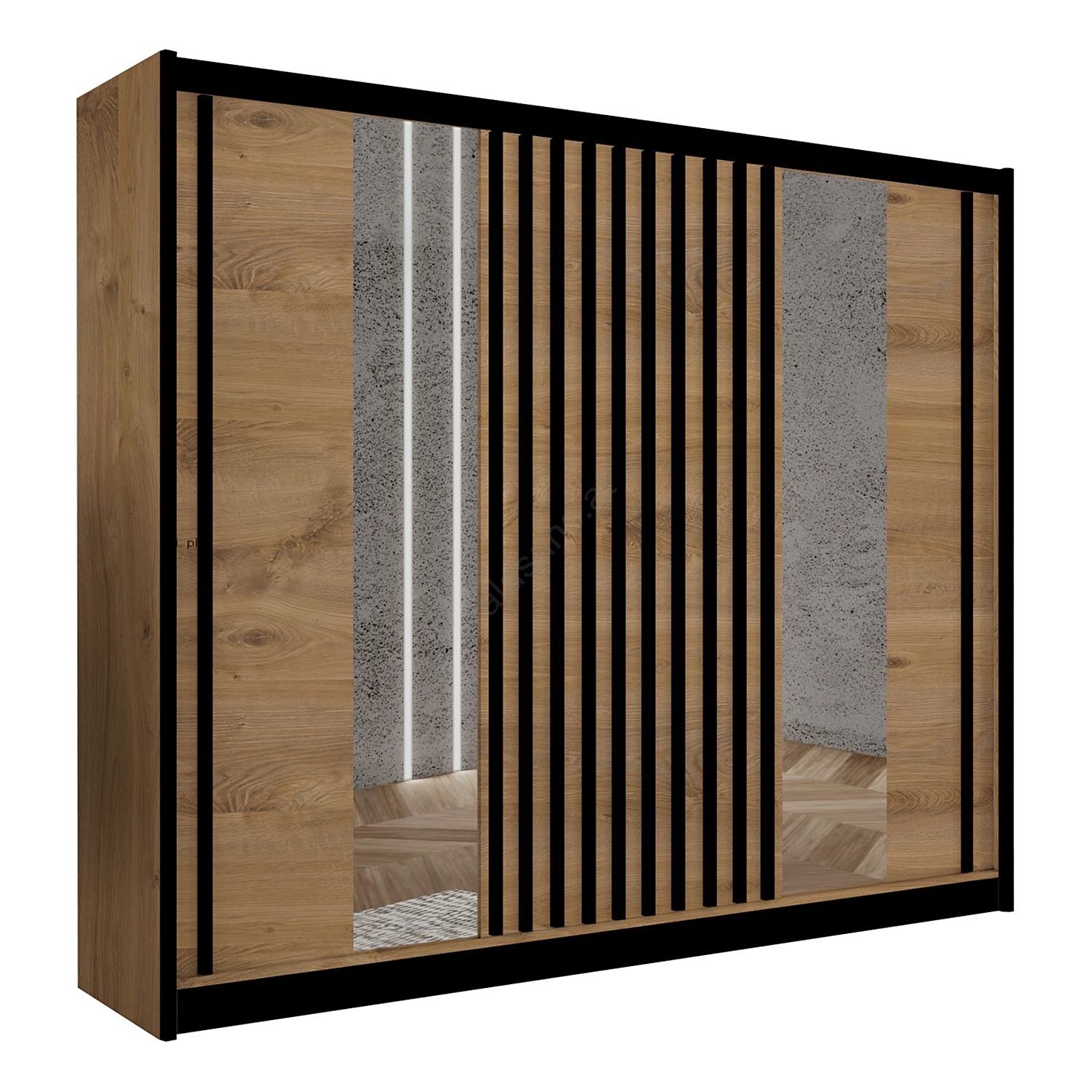 Kleiderschrank mit Spiegel SANTINO 250x215 cm Craft-Eiche/Schwarz