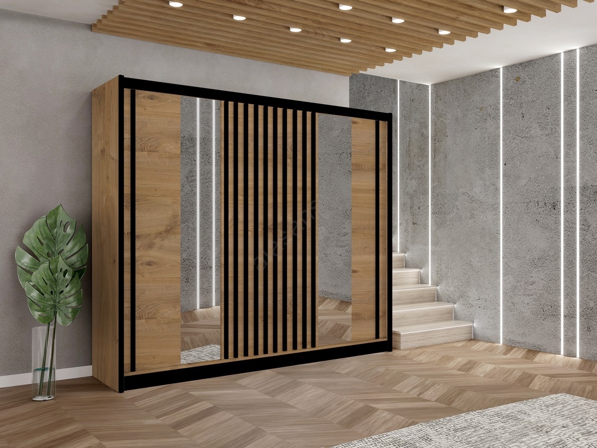 • Kleiderschrank mit Spiegel MIRO 250x215 cm Eiche Craft/Schwarz