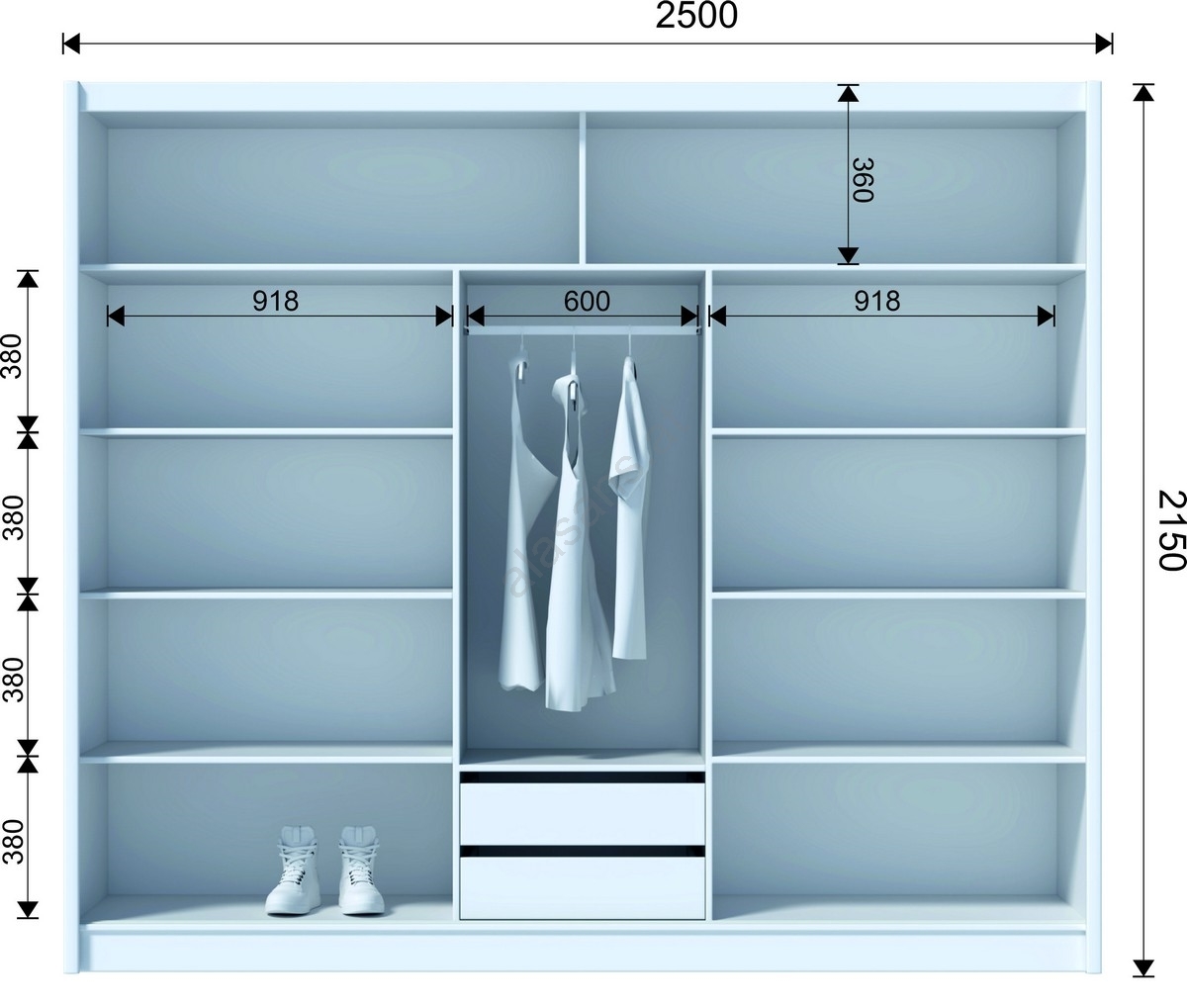 • Kleiderschrank mit Spiegel SANTINO 250x215 cm weiß/Eiche Craft