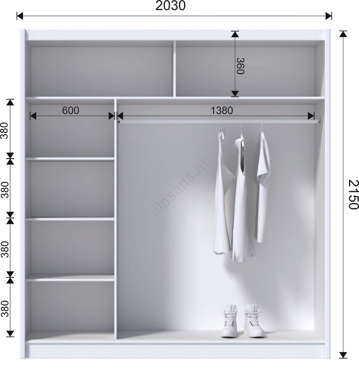 • Die perfekte Wahl für jedes Schlafzimmer, den Flur oder das Jugendzimmer, wo Sie ein klares Erscheinungsbild und eine platzsparende Lösung schätzen werden.