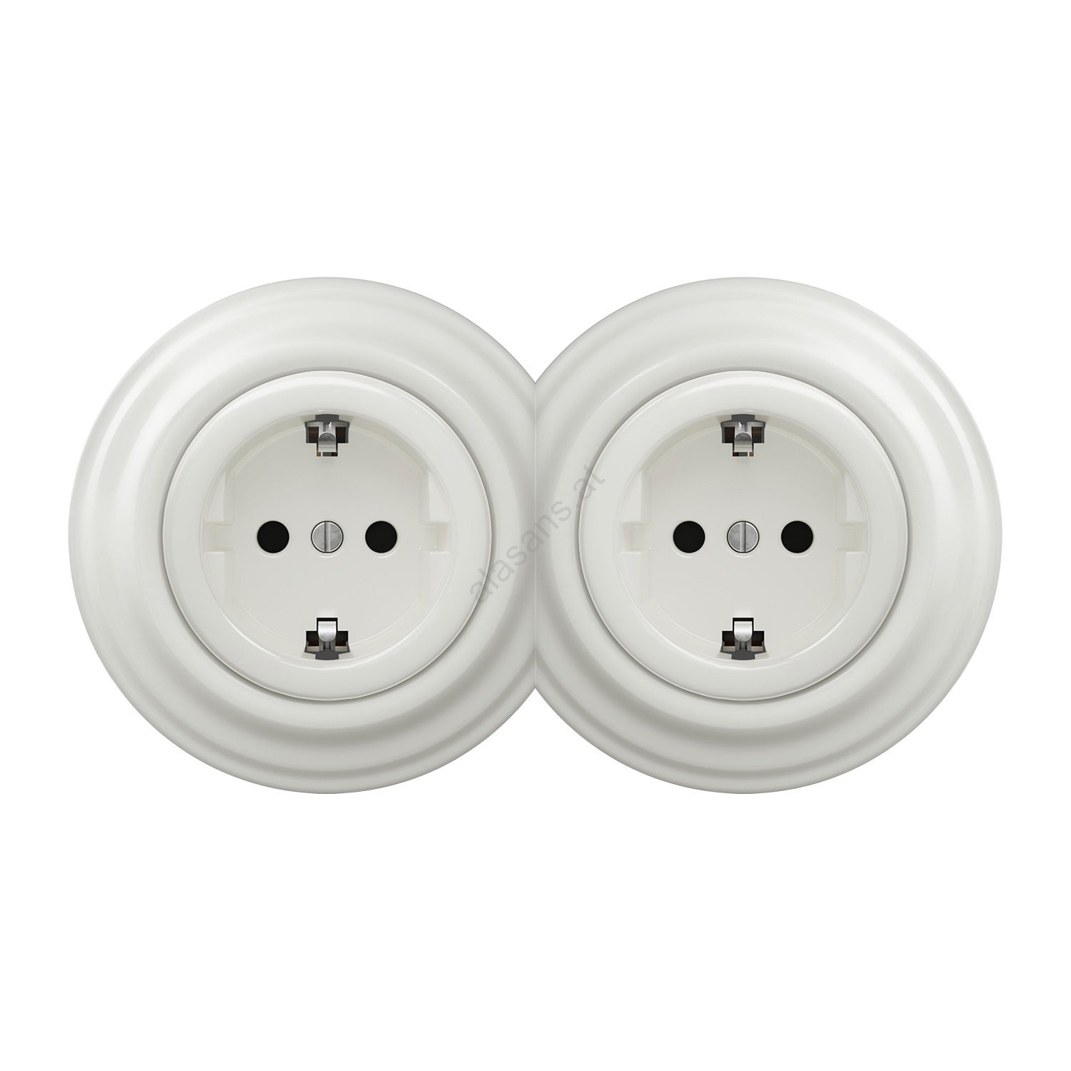 Kliklap - Doppelsteckdose im Retro-Design für den Hausgebrauch mit Rahmen SCHUKO 230V/16A weiß