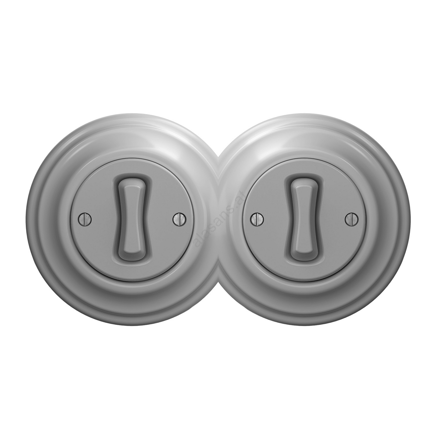 Kliklap - Doppelter Einpolschalter im Retro-Design mit Rahmen Nr. 1, grau