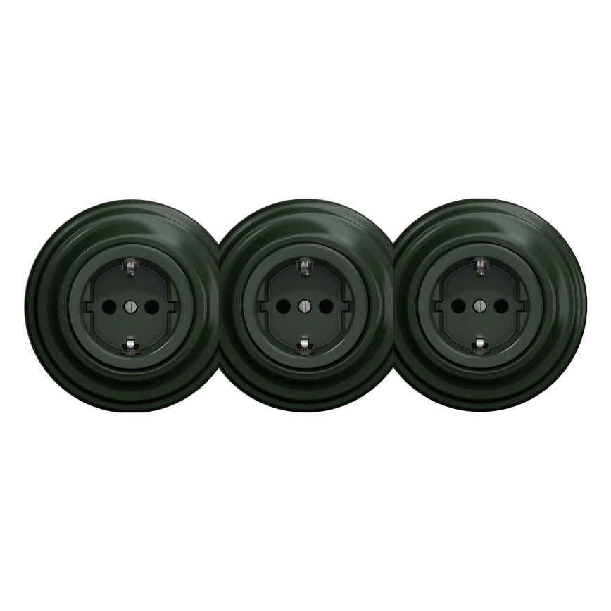 Kliklap - Dreifach-Retro-Haushaltssteckdose mit Rahmen, SCHUKO, 230 V, grün