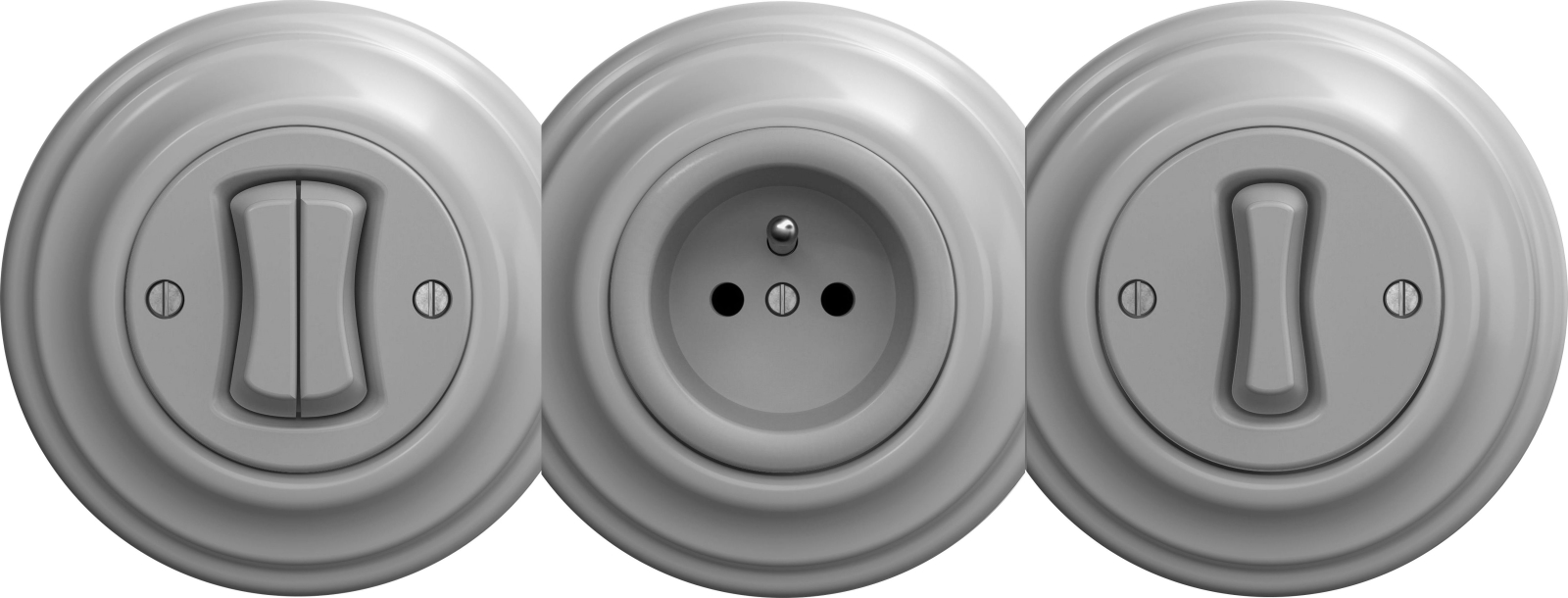 Elektroinstallation, Elektrowaren, Kliklap, Marken, Schalter, Dimmer und Rahmen, Vintage-Schalter