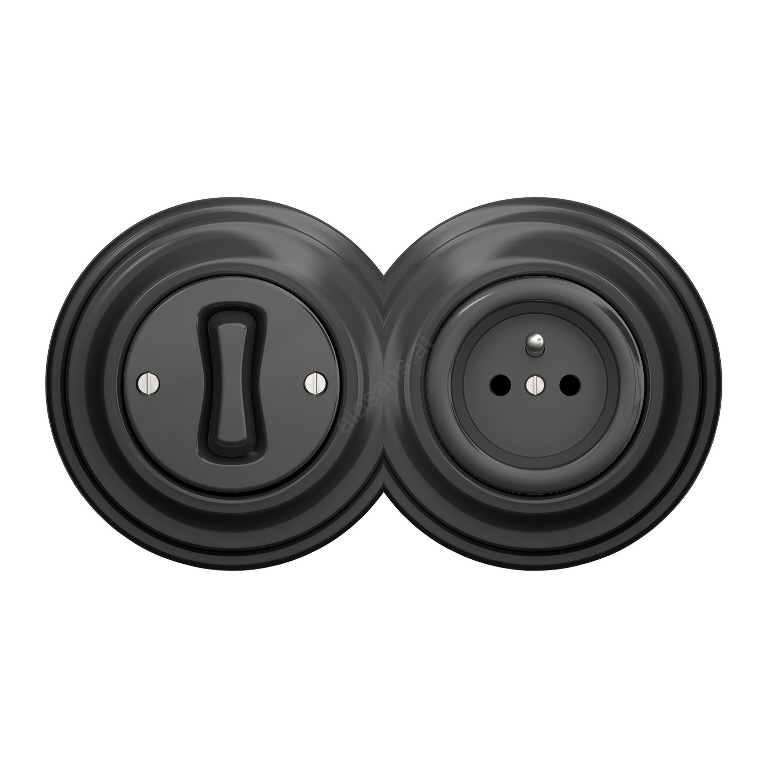 Kliklap - Retro einpoliger Schalter Nr. 1 und 230-V-Steckdose mit anthrazitfarbenem Rahmen
