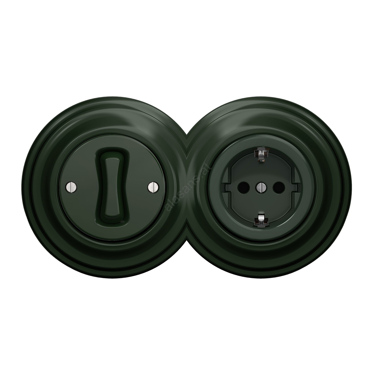Kliklap - Retro-Einpolschalter Nr. 1 und SCHUKO-Steckdose 230 V mit Rahmen, grün