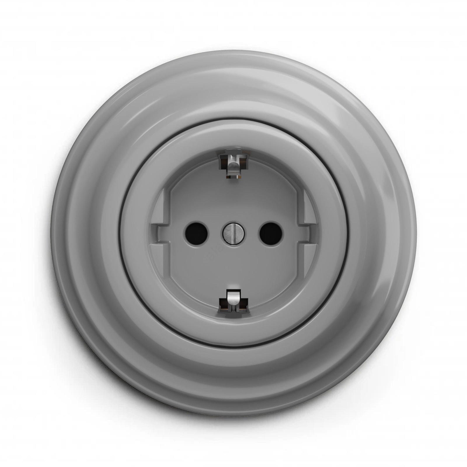 Kliklap - Retro-Schuko-Steckdose mit Rahmen 230 V/16 A, grau