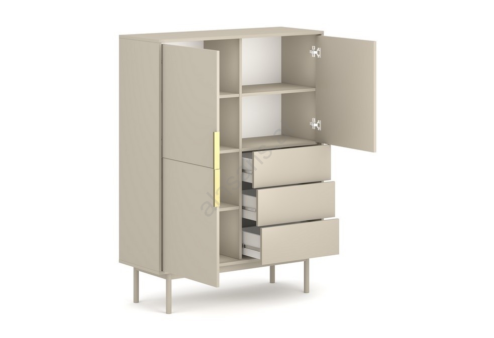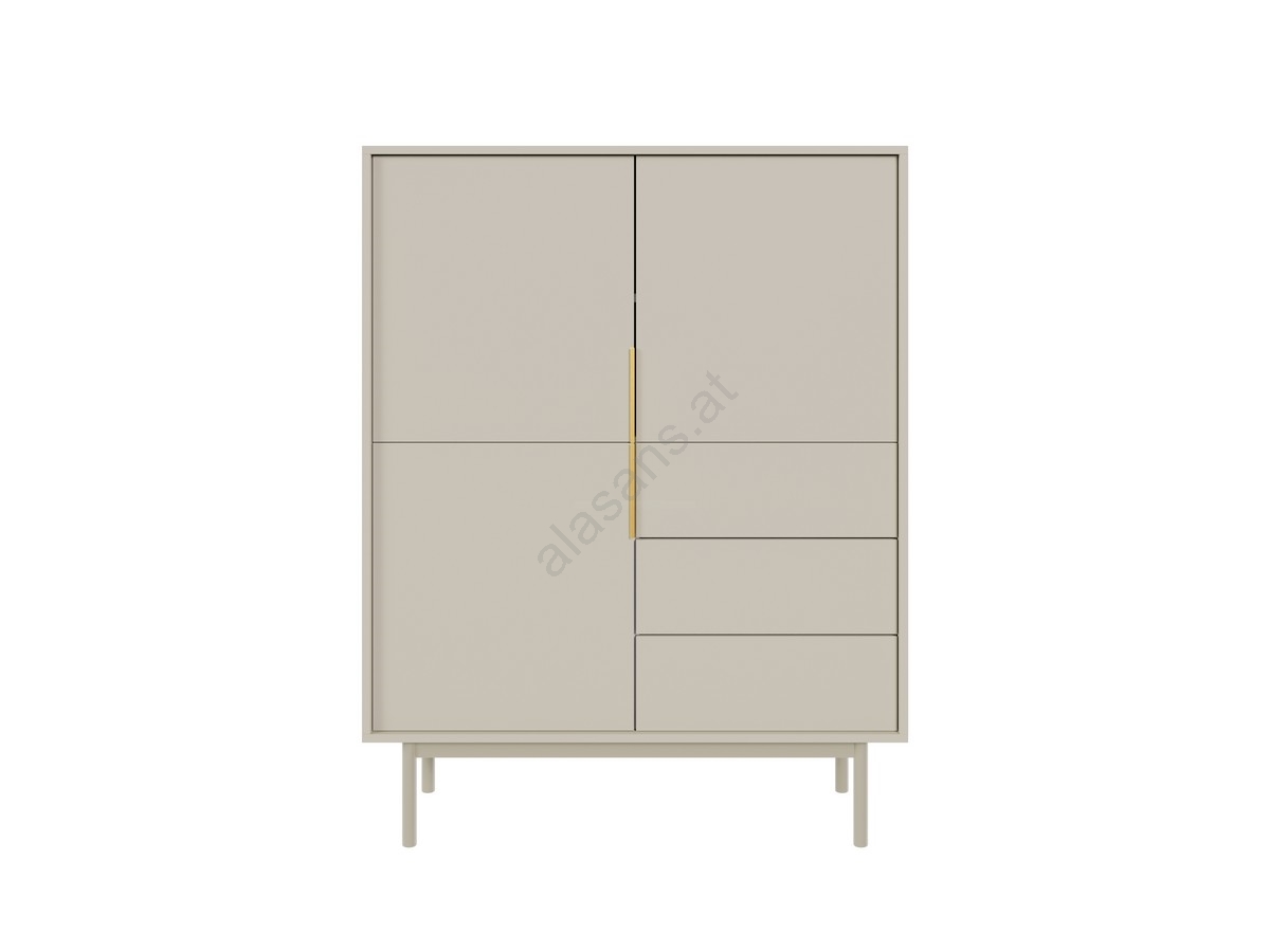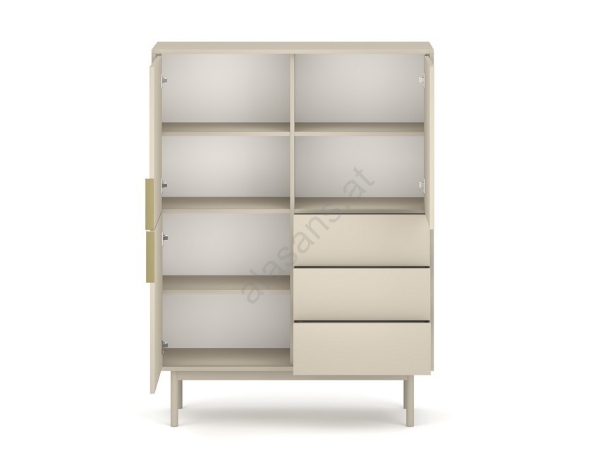 • Sie verfügt über zwei Türen auf der linken Seite sowie eine Tür und drei Schubladen auf der rechten Seite für eine übersichtliche Aufbewahrung.