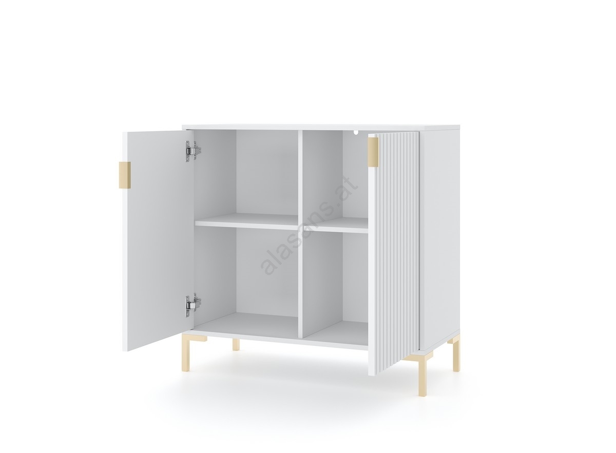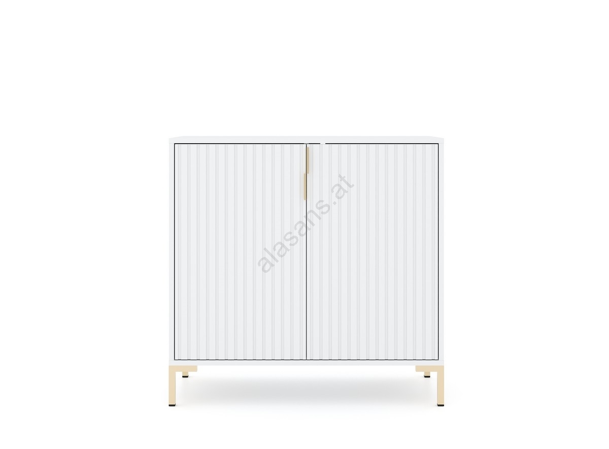 • Sie verfügt über vier Einlegeböden und zwei Türen mit vertikaler Riffelung.