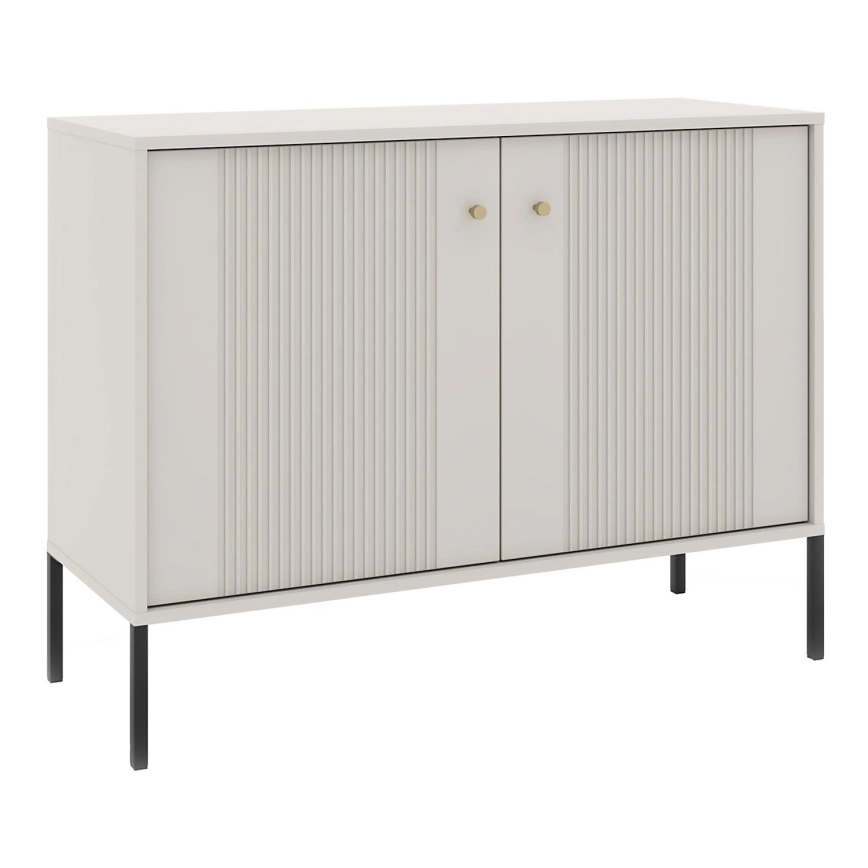 • Sie verfügt über zwei Fächer hinter Türen mit vertikaler Riffelung.