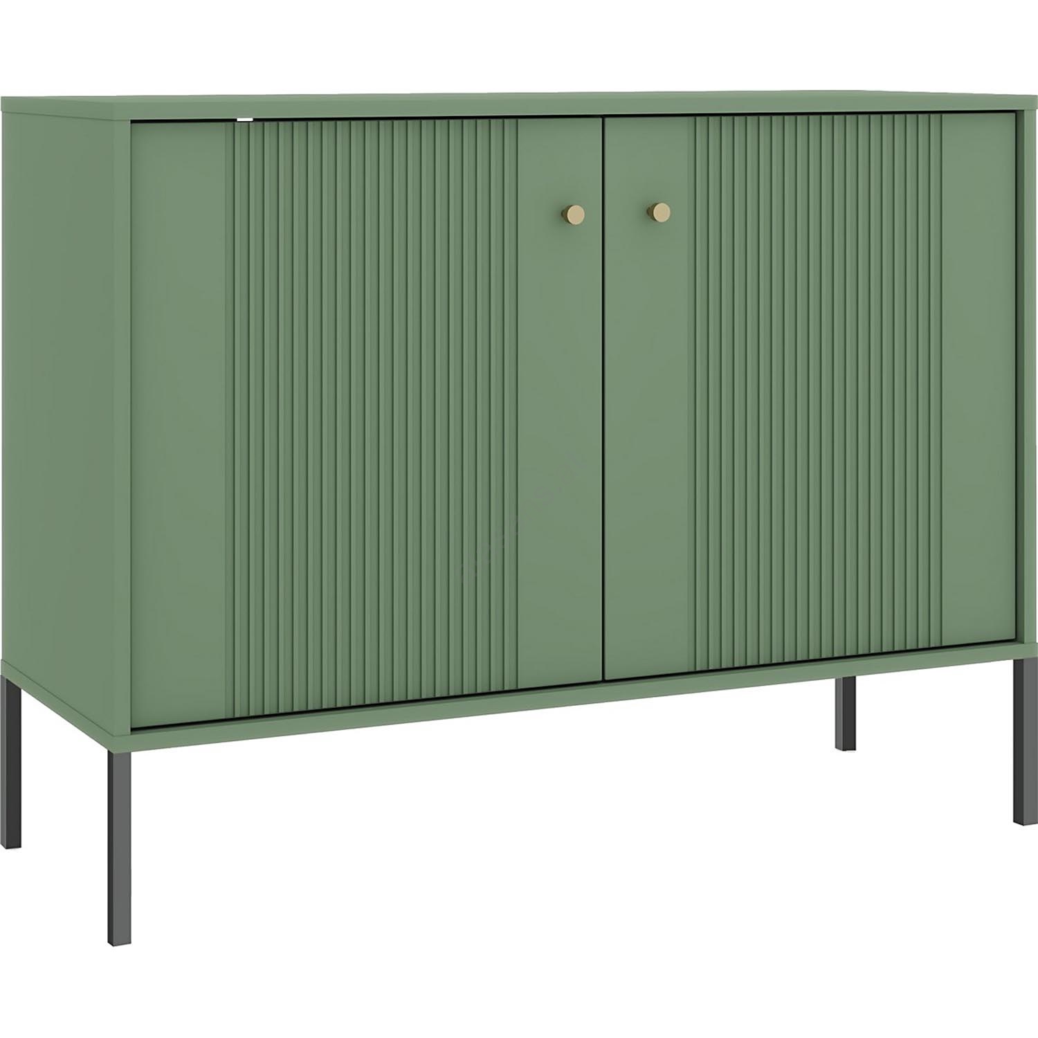 • Sie verfügt über zwei Ablagefächer hinter Türen mit vertikal geriffelter Front.