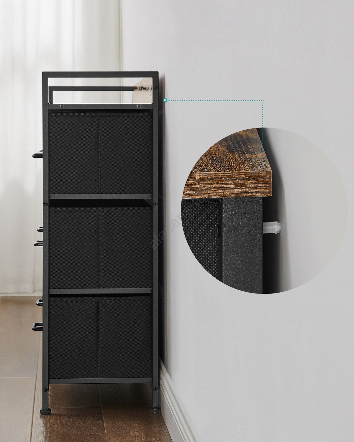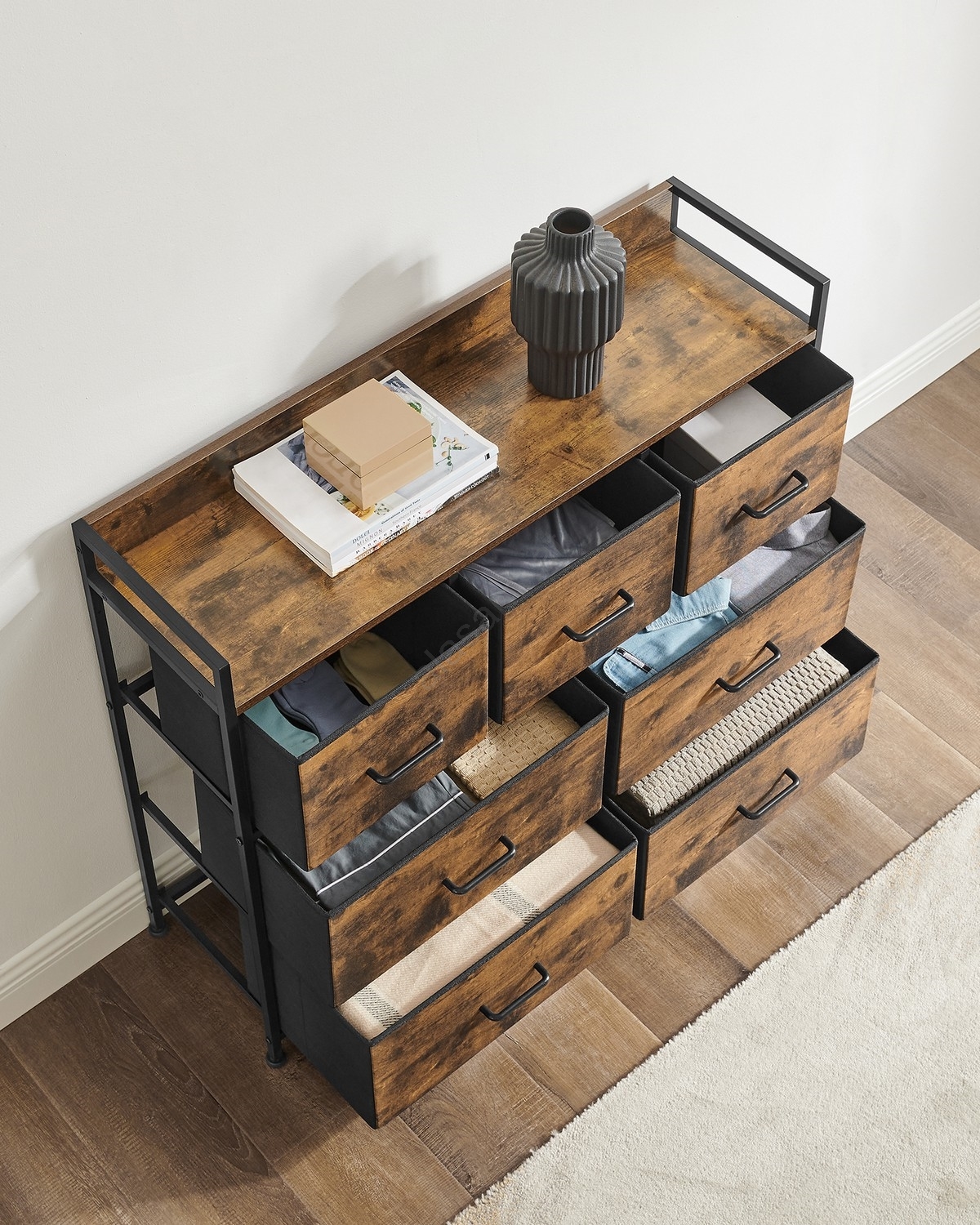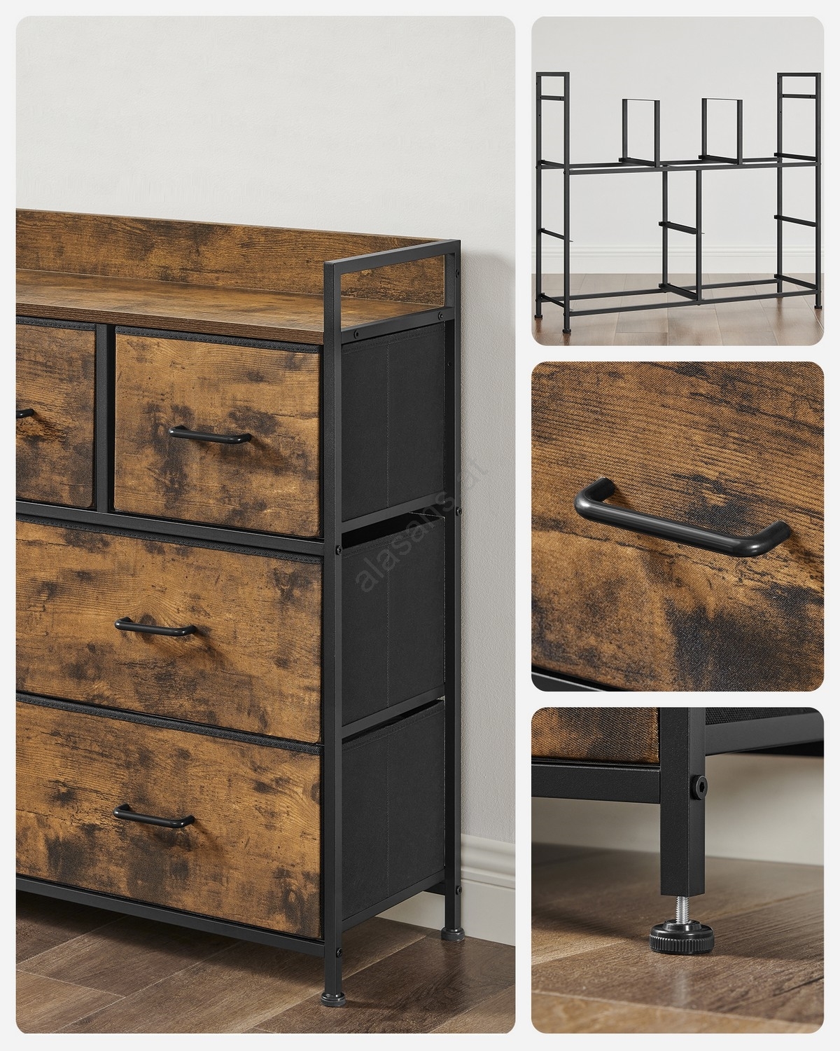 • 3 kleinere und 4 große Stoffschubladen helfen Ihnen, verschiedene Kleinteile und Kleidungsstücke zu ordnen.
