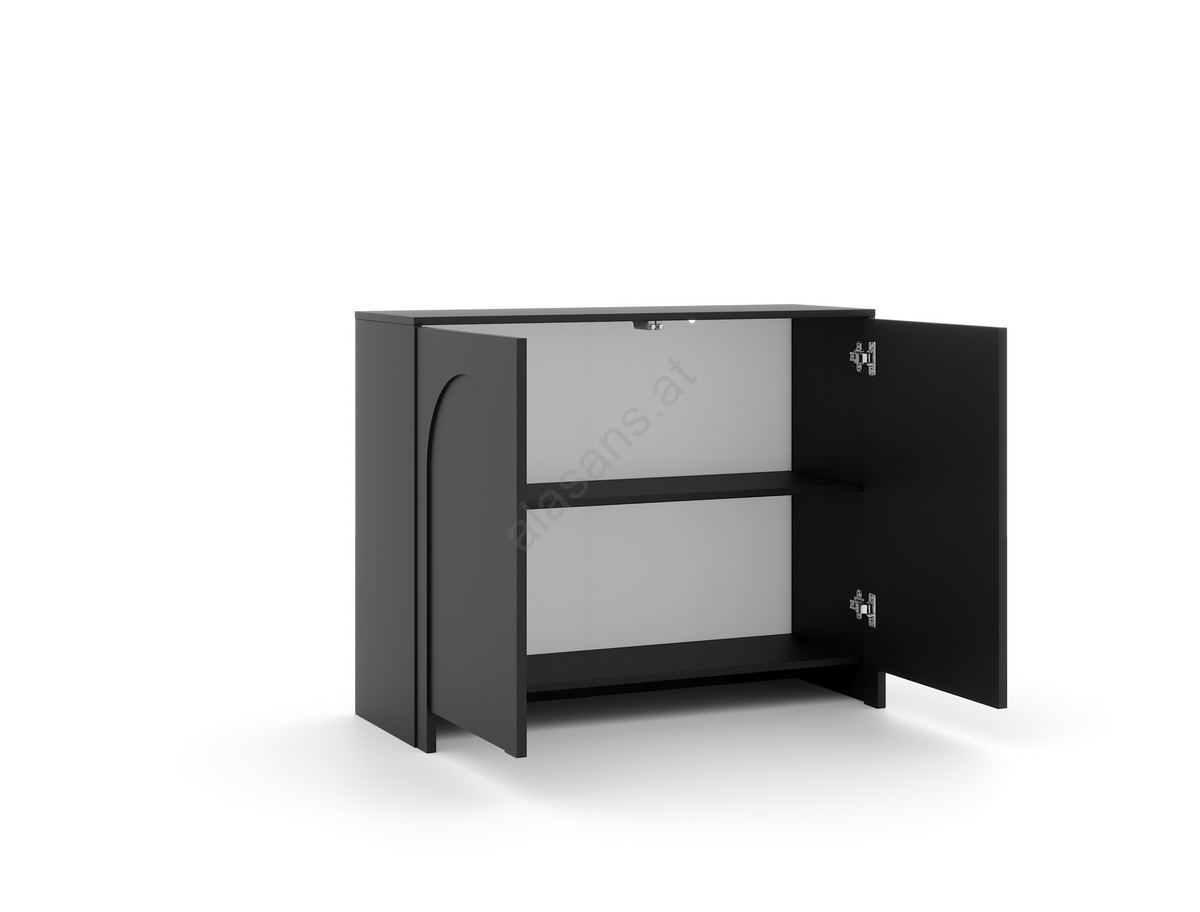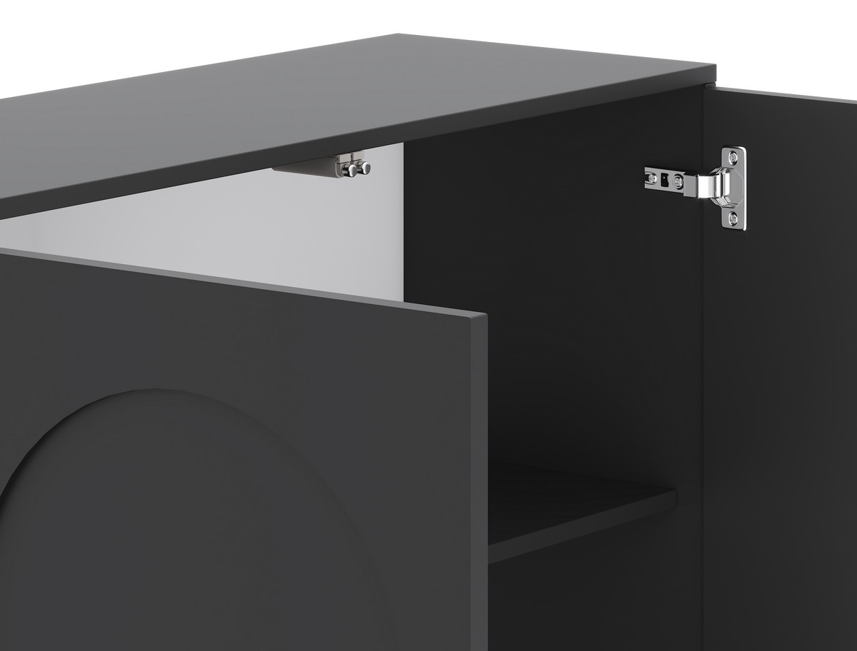 • Sie verfügt über zwei Türen, die jeweils mit einem dezenten gewölbten Muster für einen raffinierten visuellen Effekt verziert sind.