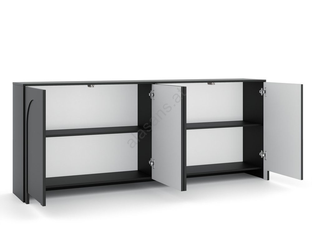 • Sie verfügt über vier Türen, die jeweils mit einem dezenten gewölbten Muster für einen raffinierten visuellen Effekt verziert sind.