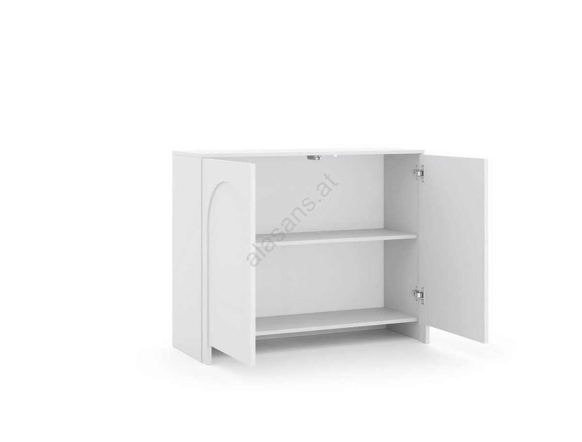 • Sie verfügt über zwei Türen, die jeweils mit einem feinen, gewölbten Muster für eine raffinierte Optik verziert sind.