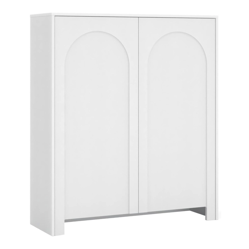 • Sie hat zwei Türen, die jeweils mit einem dezenten, gewölbten Muster verziert sind und einen raffinierten visuellen Effekt erzeugen.