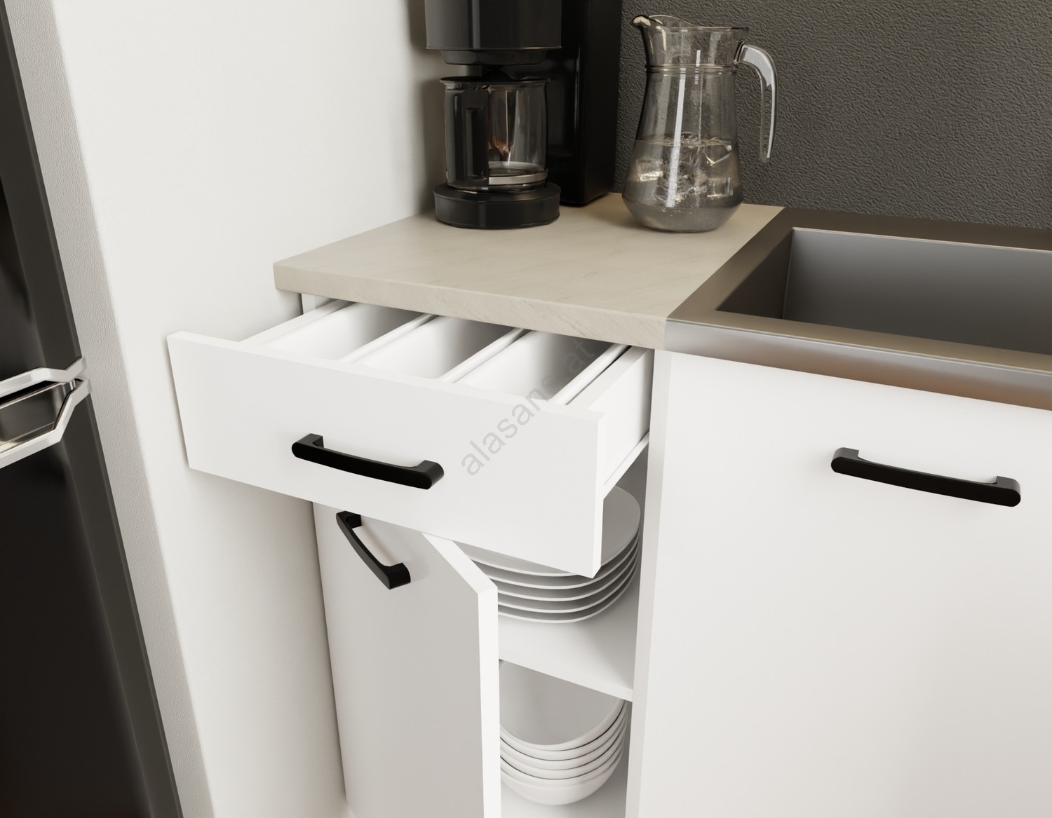 • DieAnordnung der Schränke ist modular, Sie können die Küche nach Ihren eigenen Vorstellungen anpassen.