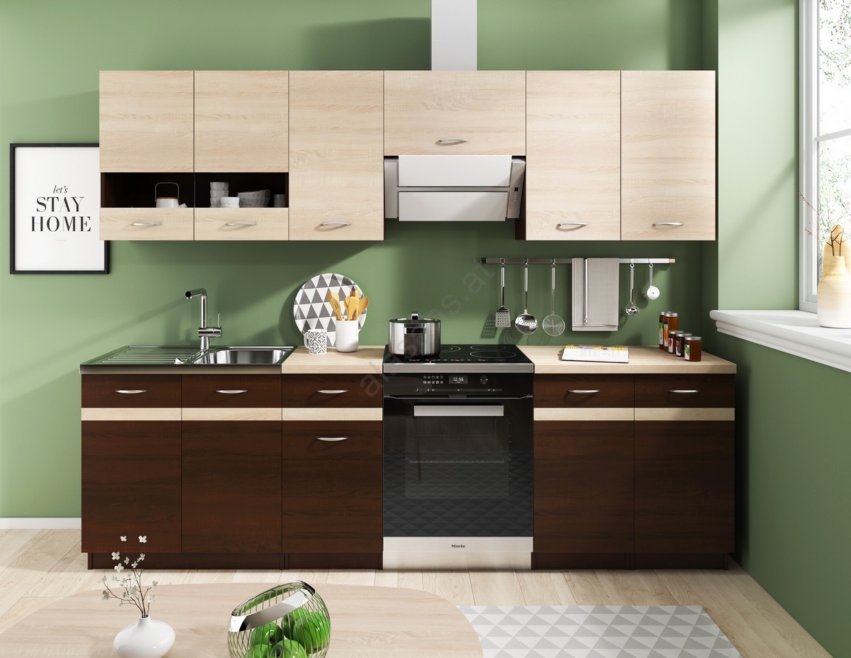 • Küchenzeile VALERIA 240 cm braun/Sonoma-Eiche