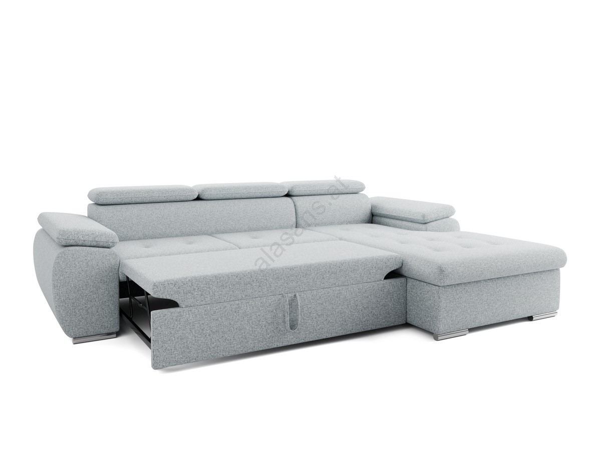 Ausklappbares Ecksofa in L‑Form mit Stauraum PADUA, grau, rechts