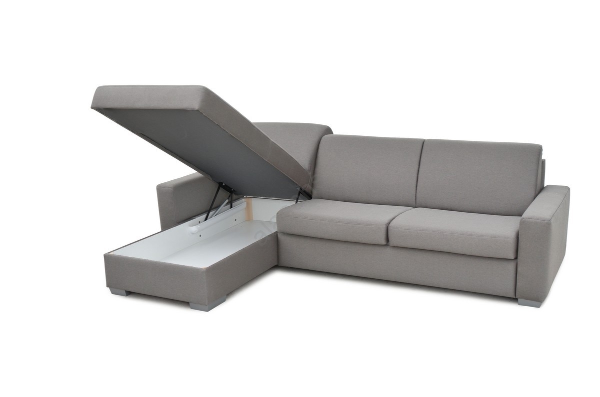 Eck-Schlafsofa zum Ausklappen für den täglichen Gebrauch mit Stauraum, L-Form LEKA links, grau