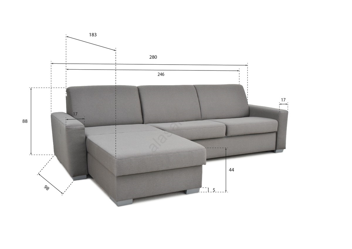 • Eck-Schlafsofa zum Ausziehen für den täglichen Gebrauch mit Stauraum, L-Form, LEKA, rechts, grau