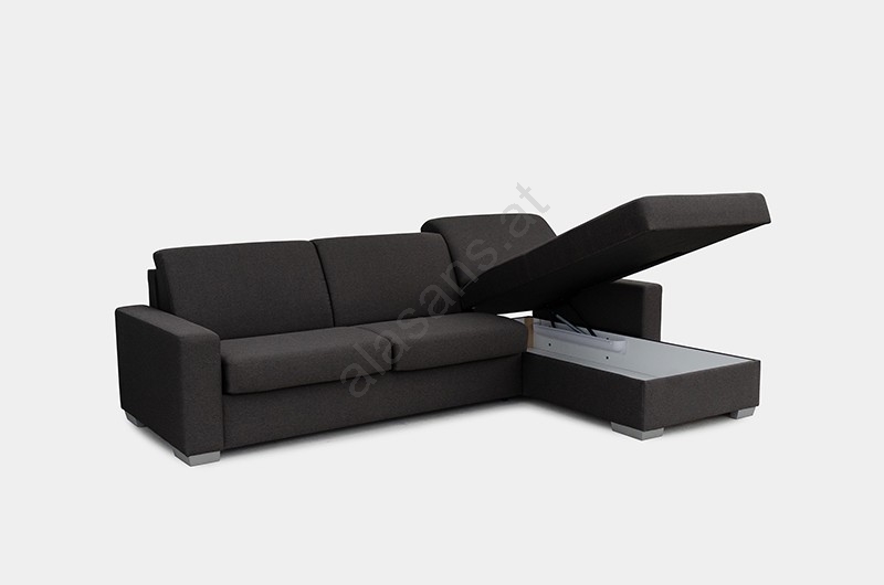 • Eck-Schlafsofa zum Ausklappen für den täglichen Gebrauch mit Stauraum, L-Form LEKA links, grau