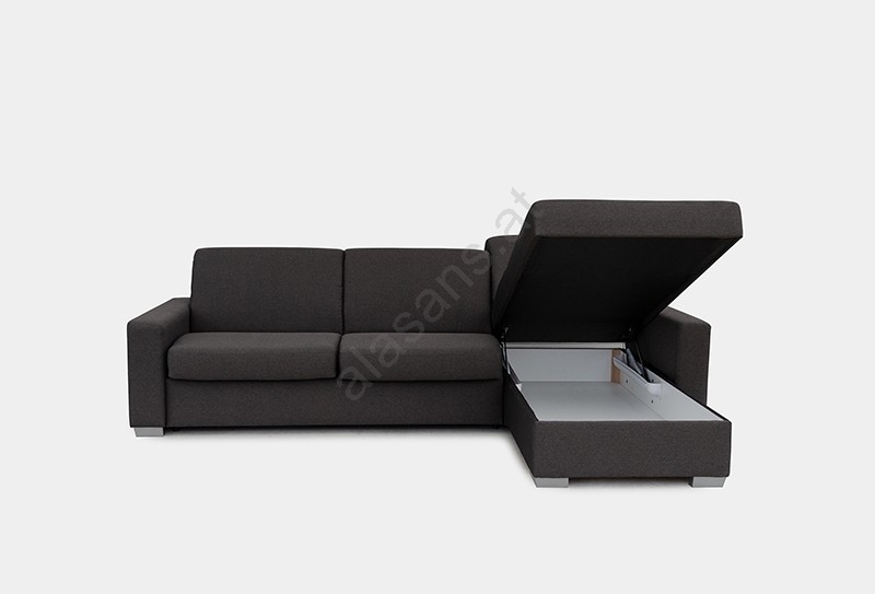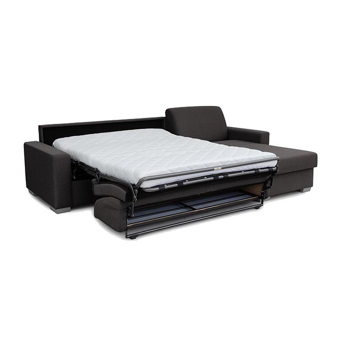• Eck-Schlafsofa zum Ausziehen für den täglichen Gebrauch mit Stauraum, L-Form, LEKA, rechts, grau