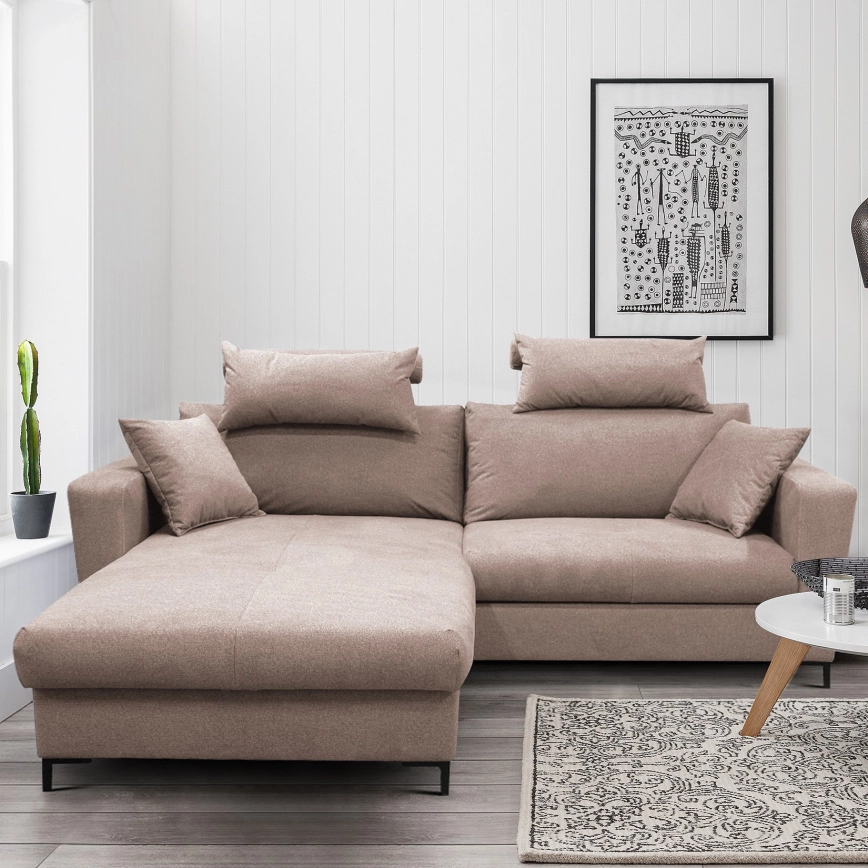 L-förmiges Ecksofa HORTA mit Schlaffunktion und Stauraum, links, rosa