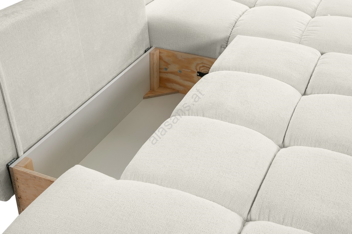 Gepolstertes L-Ecksofa ALMADA mit Schlaffunktion und Stauraum, rechts, Beige