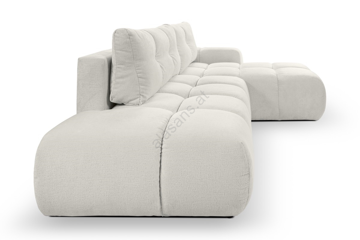 • Die Rückseite des Sofas ist hochwertig bezogen, sodass eine freie Platzierung im Raum möglich ist.