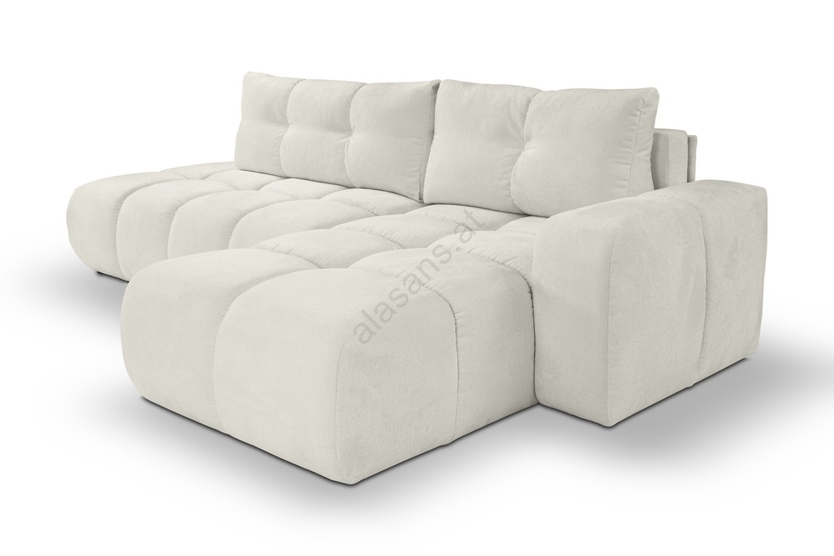 • Modernes ausziehbares Ecksofa ALMADA (rechte Ecke) ist die ideale Wahl für alle, die eine Kombination aus Stil, Komfort und Praktikabilität suchen.