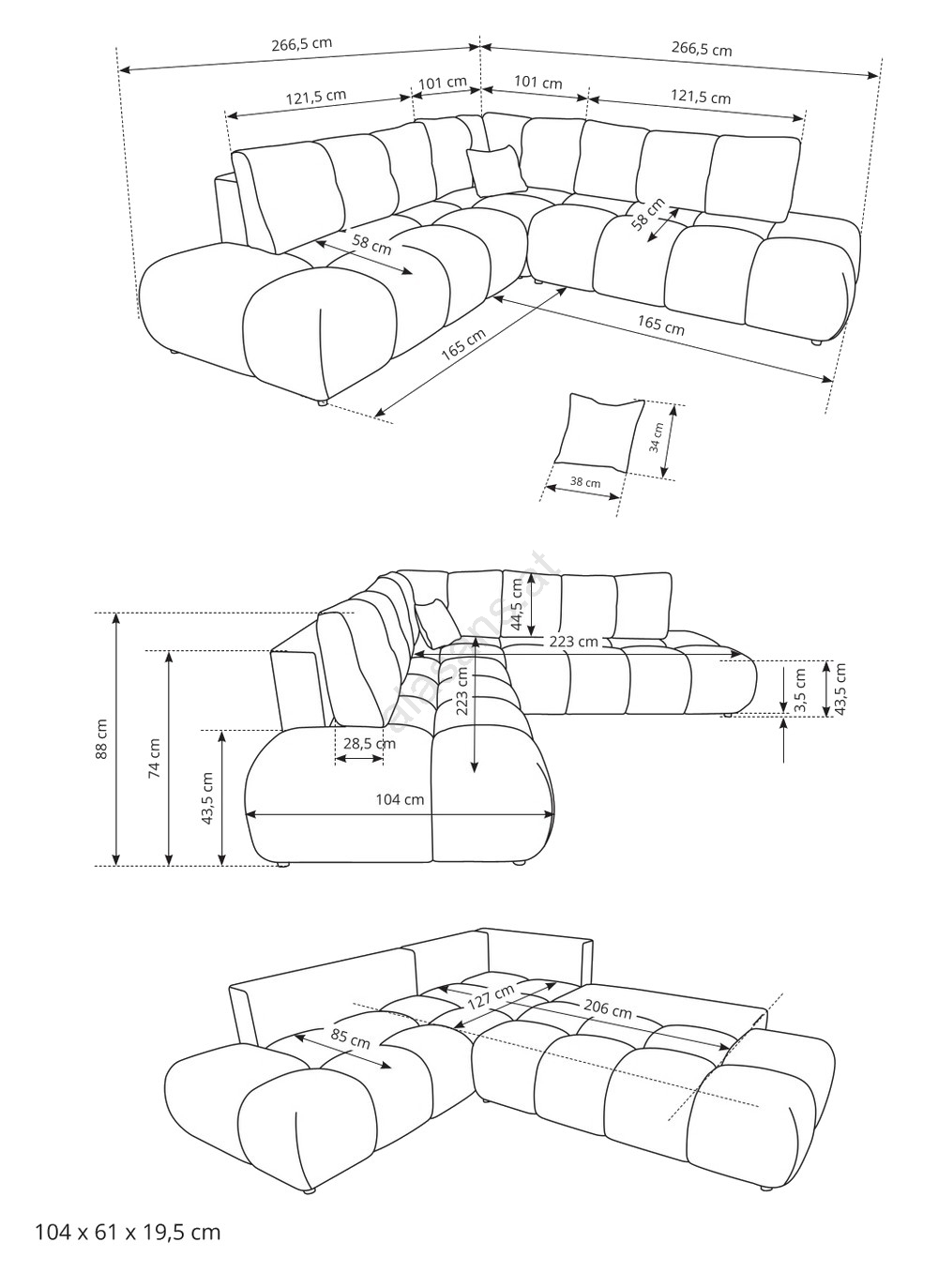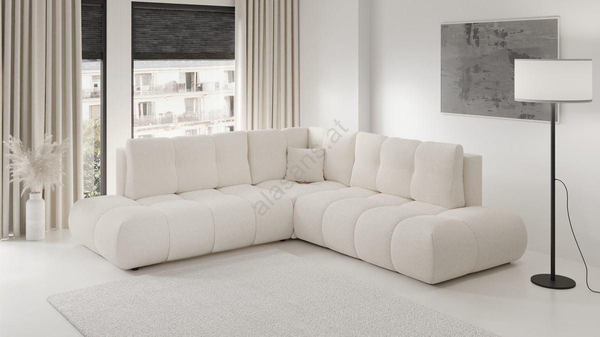 • Moderne, ausklappbare Eck-Sitzgarnitur ALMADA (rechte Ecke) ist die ideale Wahl für alle, die Stil, Komfort und Funktionalität suchen.