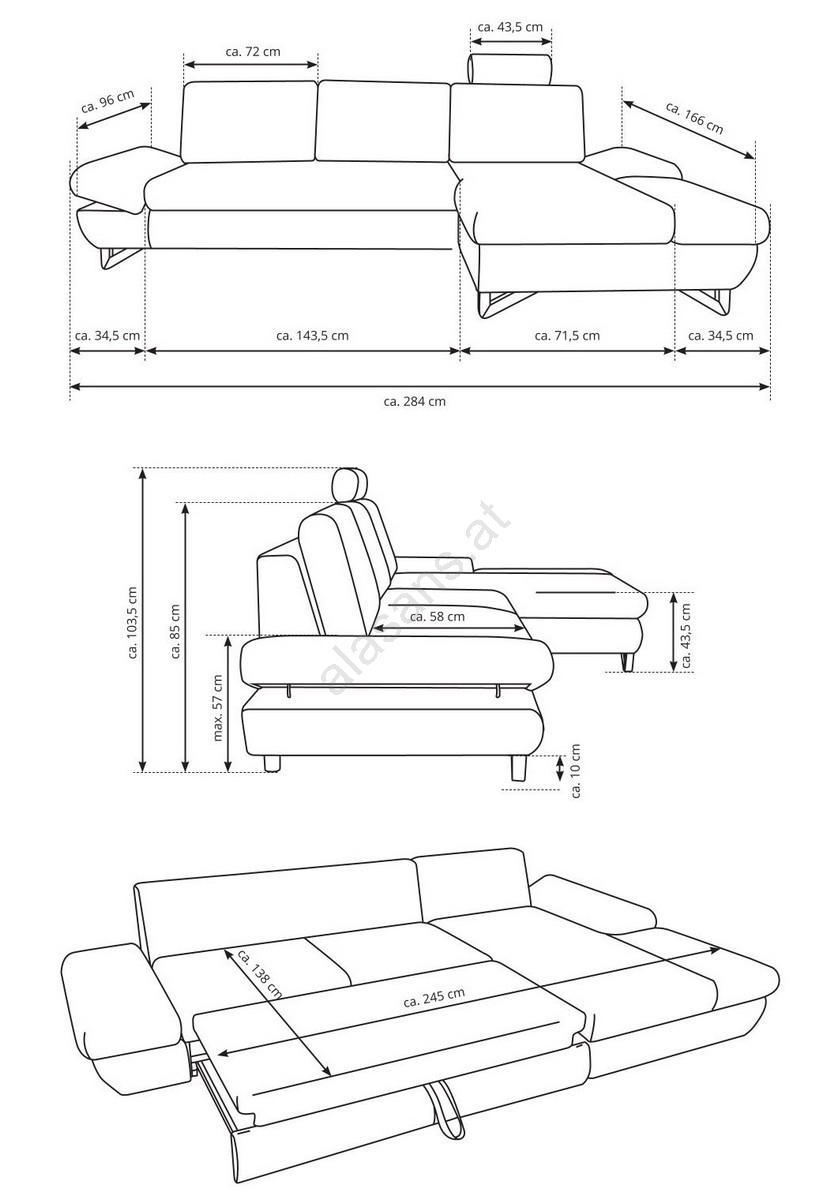• Moderne ausziehbare Eckcouch AVESTA (linke Ecke) ist die ideale Wahl für alle, die Stil, Komfort und Praktikabilität suchen.