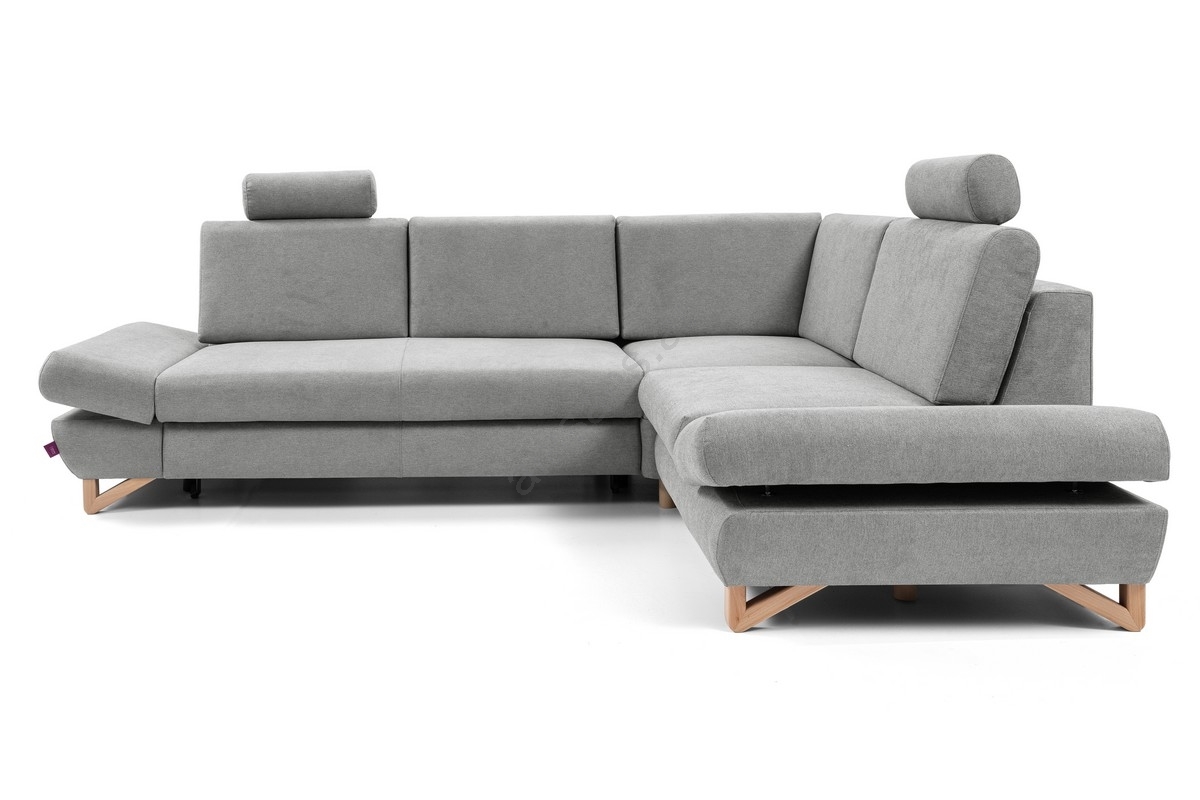 Ausziehbares gepolstertes Ecksofa AVESTA, L-Form, rechts, mit Stauraum, grau