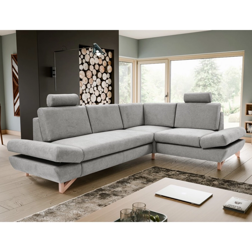 • Ausziehbares, gepolstertes Ecksofa mit Stauraum in L‑Form, AVESTA, links, grau