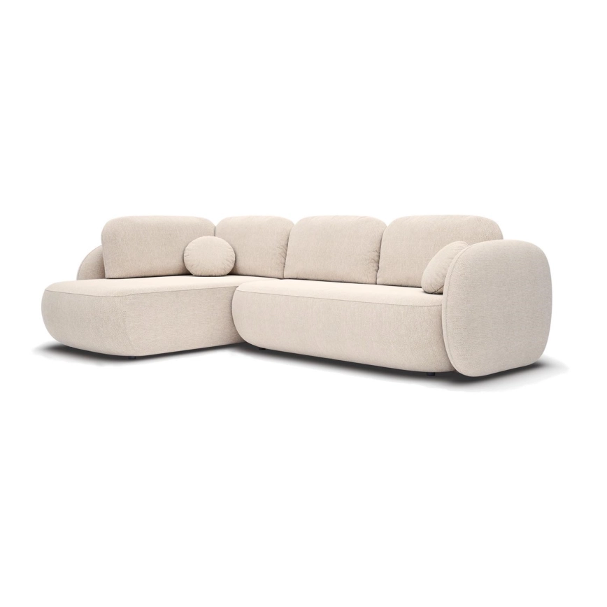 Eck-Schlafsofa OLBIA in L-Form, links, ausklappbar mit Stauraum, beige
