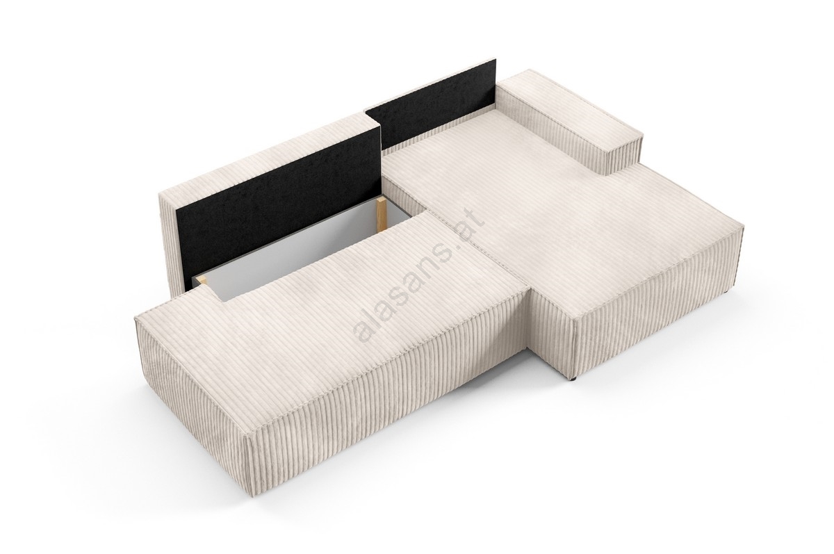• Das Sofa verfügt über einen geräumigen Stauraum zur Aufbewahrung von Bettwäsche und weiteren saisonalen Gegenständen.