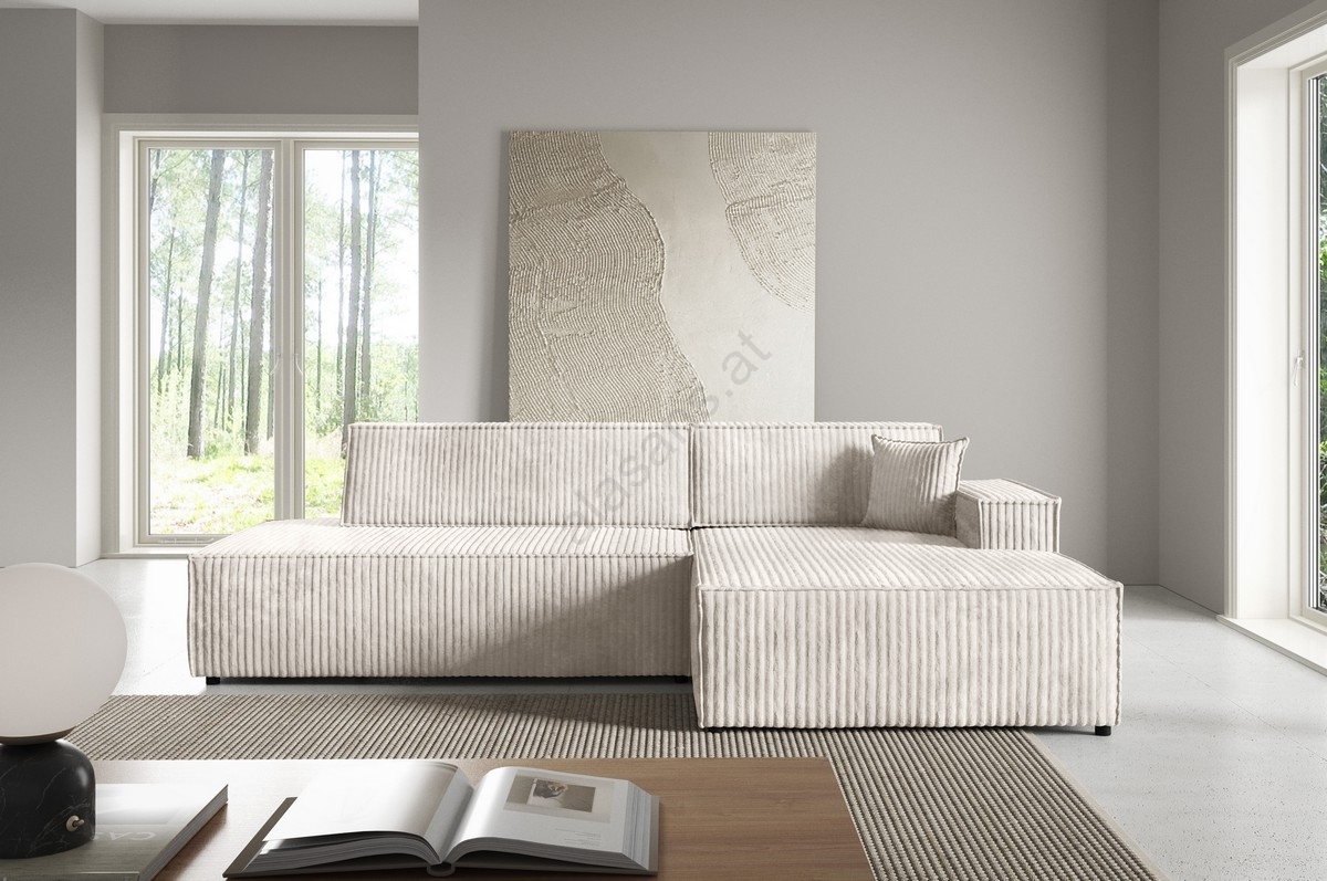 Ecksofa mit Schlaffunktion und Stauraum in L‑Form, TERAMO, rechts, beige