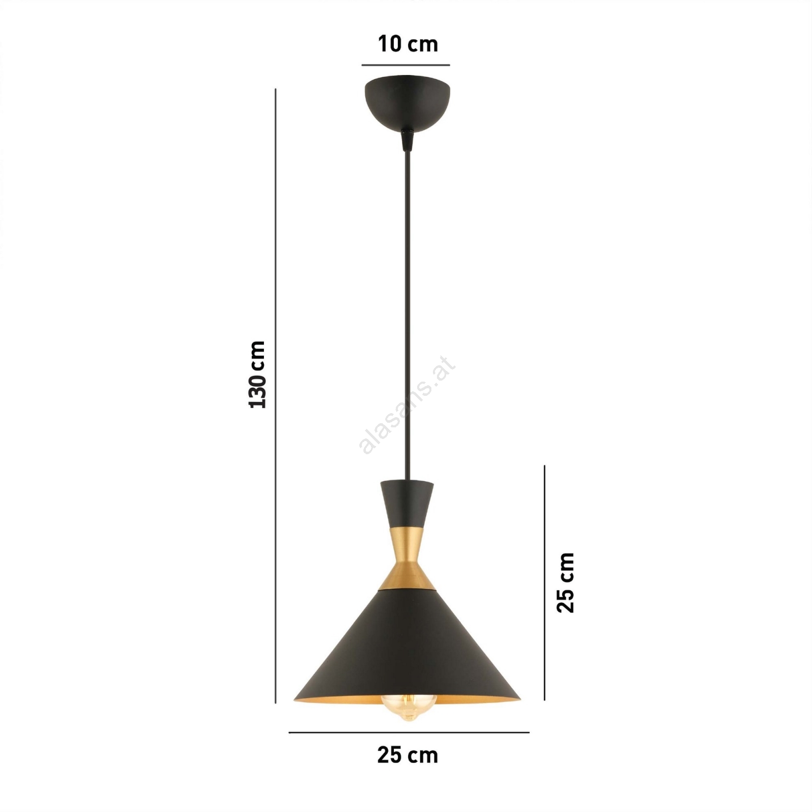 • Hängeleuchte an Kabel MONZA 1xE27/40W/230V Ø 25 cm Schwarz/Gold