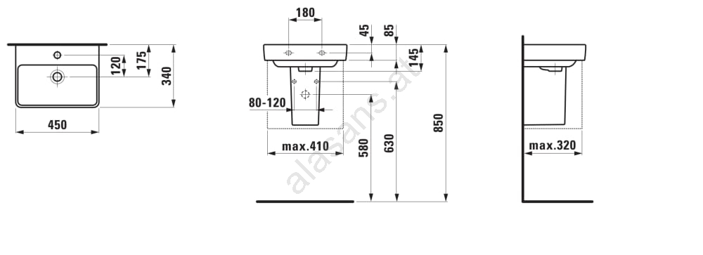 • Im Lieferumfang enthalten: Waschbecken ohne Siphon und Armatur.